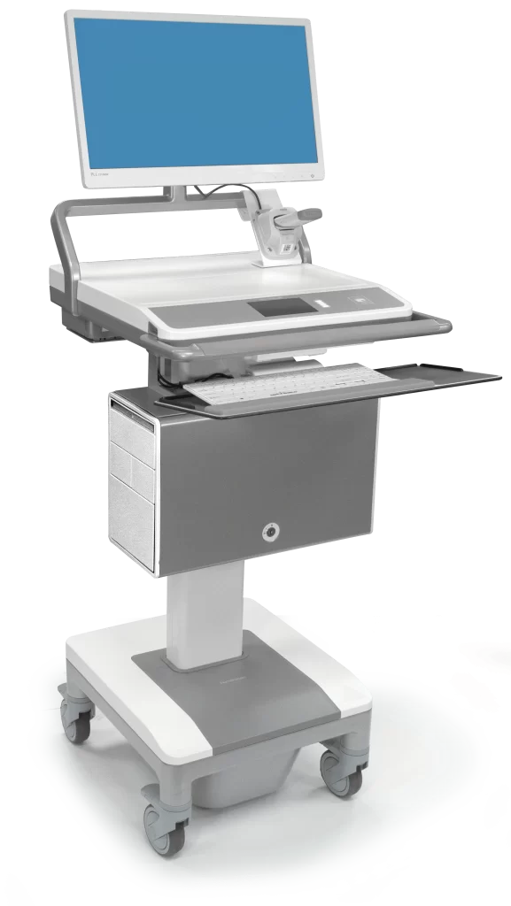 The MedLink™ Cart stands as a comprehensive medication management solution, guaranteeing secure and precise medication administration. Its specialized design aims to minimize human error, enhance patient safety, and establish a closed-loop medication system through the use of lockable drawers and patient wristband scanning. This meticulous process guarantees that every patient receives the accurate medication, enabling caregivers to concentrate on delivering optimal patient care.