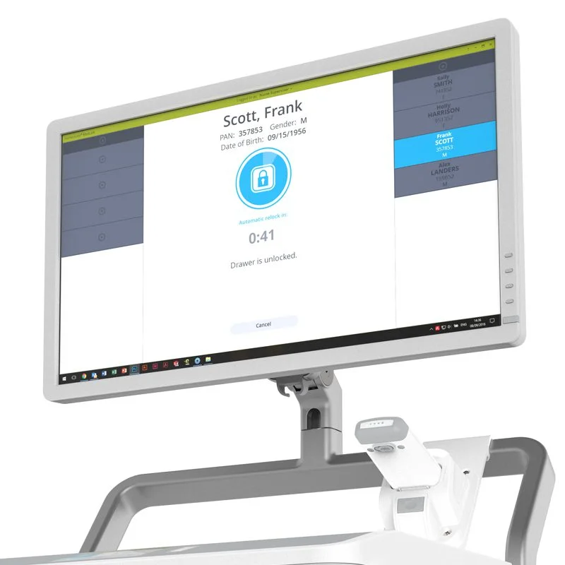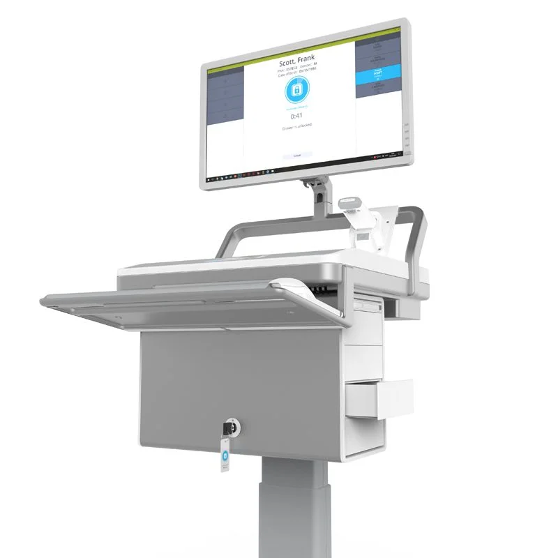 The MedLink™ Cart stands as a comprehensive medication management solution, guaranteeing secure and precise medication administration. Its specialized design aims to minimize human error, enhance patient safety, and establish a closed-loop medication system through the use of lockable drawers and patient wristband scanning. This meticulous process guarantees that every patient receives the accurate medication, enabling caregivers to concentrate on delivering optimal patient care.